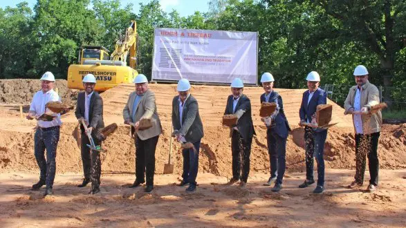 Am 13.06.2017 erfolgte der Spatenstich der Acura 2 in Roth. Die Hans Humpenöder GmbH/Hoch-/Tiefbau ist mit den Rohbauarbeiten des neuen Gesundheits- und Rehazentrums beauftragt. Auf der entstehenden Fläche von 960 qm sollen eine ambulante Reha, ein Fitnesszentrum, eine radiologische Praxis und eine Praxis für Allgemeinmedizin ihren Platz finden. Auf dem Bild von links: Horst Humpenöder, Geschäftsführer Hans Humpenöder GmbH; Bürgermeister Ralph Edelhäußer; Hans-Peter Popp, Initiator und Projektentwickler; Klaus Migeod, Diagnosticum Bayern Mitte; Thomas Wenzel, Architekt; sowie Thomas Albrecht, Rüdiger Mühlbronner und Mathias Müller, Geschäftsführer von Alpha-Reha.